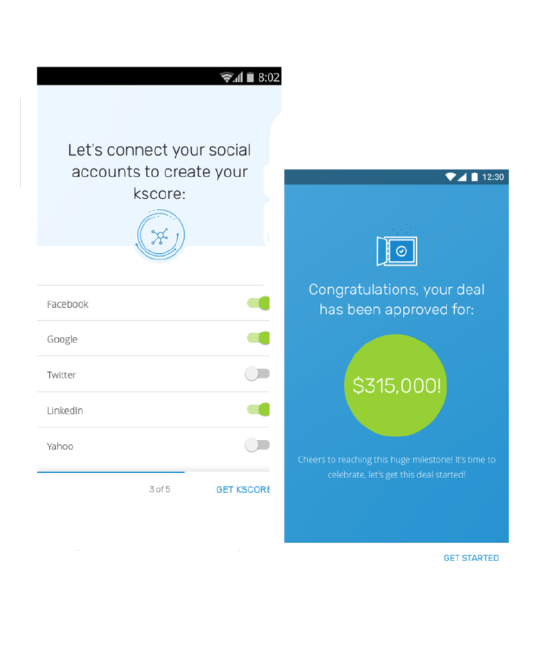 Through kountable's custom system, an entrepreneur's digital footprint is translated to a kScore‑a metric, which is then used to help assess project risk and help determine appropriate funding for their projects.